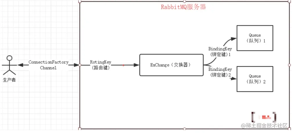 生产者主要负责投递消息到RabbitMQ服务器broker。首先建立一个与broker的TCP连接,然后创建一个或者多个虚拟连接的Channel通道,在Channel中指定需要投递的交换器,消息的路由键和消息内容,最后调用publish方法发布到这个交换器。