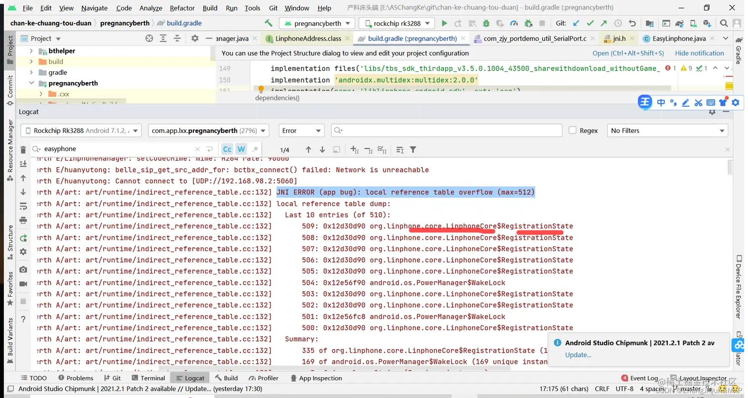 1、当java和c回调传的参数过多的时候,会出现内存泄露问题, 列如程序运行一段时间之后,莫名的出现如下错误JNI ERROR (app bug): local reference table overflow (max=512) Failed adding to JNI local ref table (has 512 entries) VM aborting