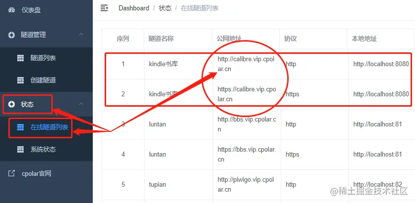 完成这几项设置后,我们就可以在“状态”项下的“在线隧道列表”中找到本地piwigo相册网页在公共互联网的地址,我们可以将这个网站发送给远方家人,让家人也能感受新生命带来的喜悦和安慰。