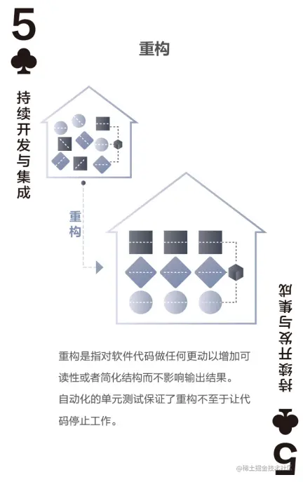 极限编程(XP)的创始人之一Ron Jeffries说道:“在敏捷中,让设计简单化,必须让设计从简单开始,然后变得成熟。要做到这一点,重构是唯一的出路。”