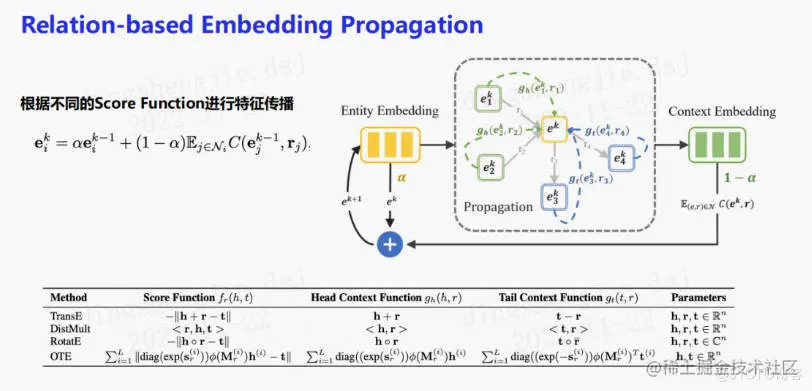 借鉴了最近基于纯特征传播的算法,如SGC等图神经网络的简化方式,提出了基于关系的embedding传播。发现单独使用embedding进行特征传播在知识图谱上是行不通的。因为知识图谱上存在复杂的边关系。所以,根据不同关系下embedding设计了不同的score function进行特征传播。此外,发现之前有一篇论文提出了OTE的算法,在图神经网络上进行了两阶段的训练。