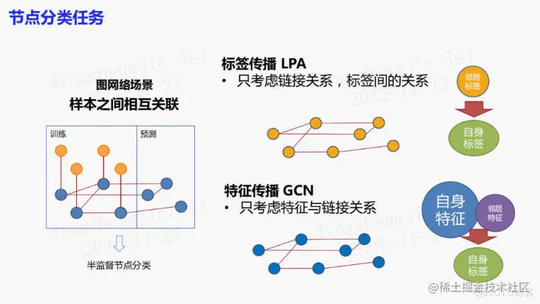 解决节点分类问题的传统方法是LPA标签传播算法,考虑链接关系以及标签之间的关系。另外一类方法是以GCN为代表的特征传播算法,只考虑特征与链接的关系。