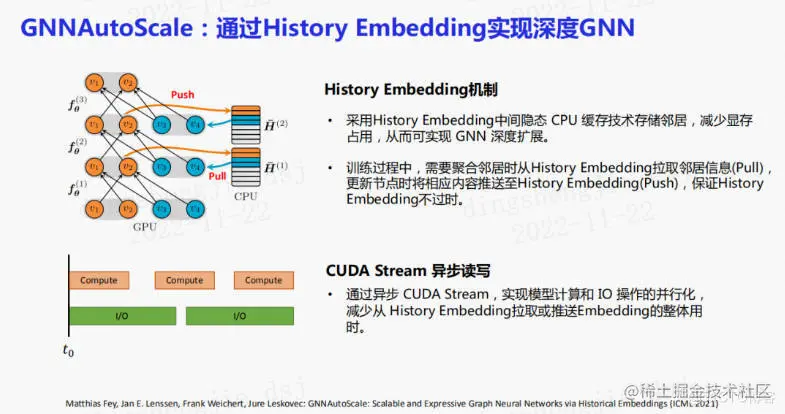 发现PyG的作者的新工作GNNAutoScale能够把一个图神经网络进行自动的深度扩展。它的主要思路是利用CPU的缓存技术,将邻居节点的特征缓存至CPU内存中。当训练图网络时,可以不用实时获取所有邻居的最新表达,而是获取它的历史embedding进行邻居聚合计算。实验发现这样做的效果还是不错的。