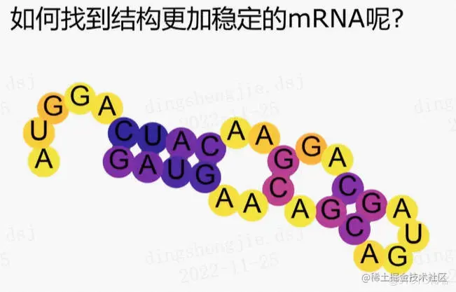 如何找到结构更加稳定的mRNA?利用图神经网络找到更稳定的mRNA,颜色越深越稳定.