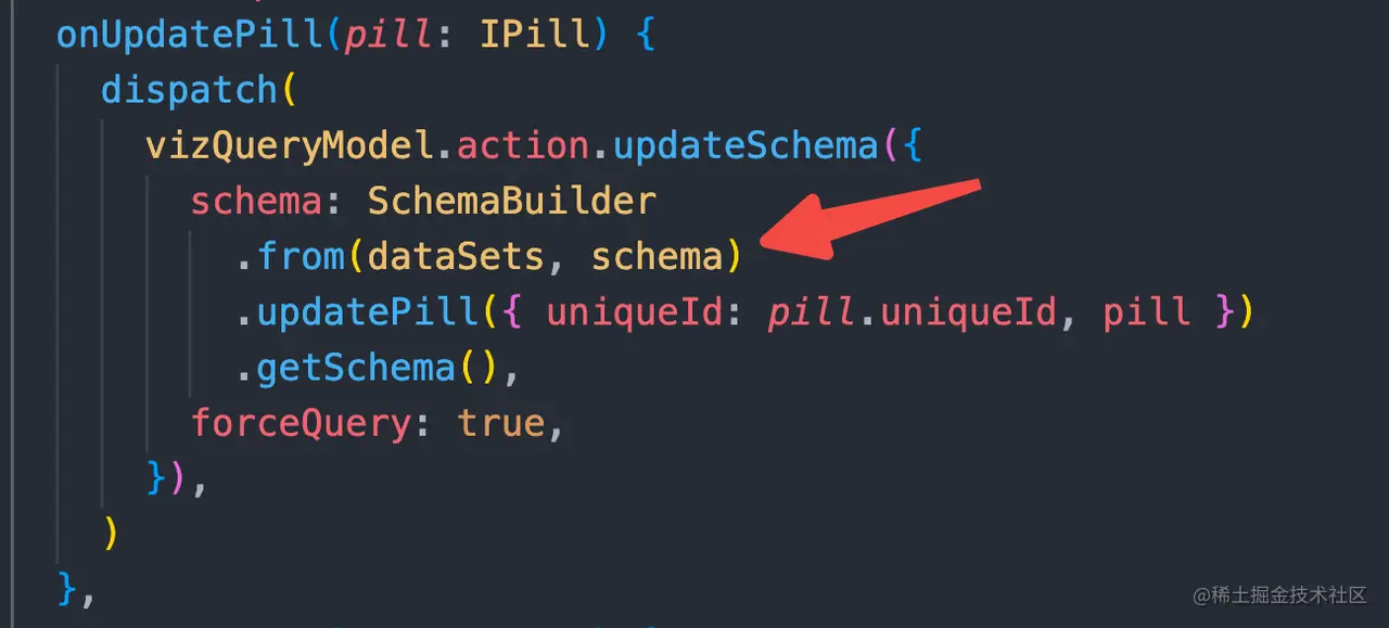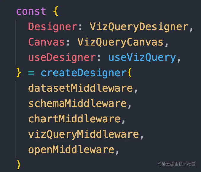 与 dva 甚至大部分现代数据流方案不同,这里只需要 useVizQuery 一个函数就可以同时获取数据、调用方法: