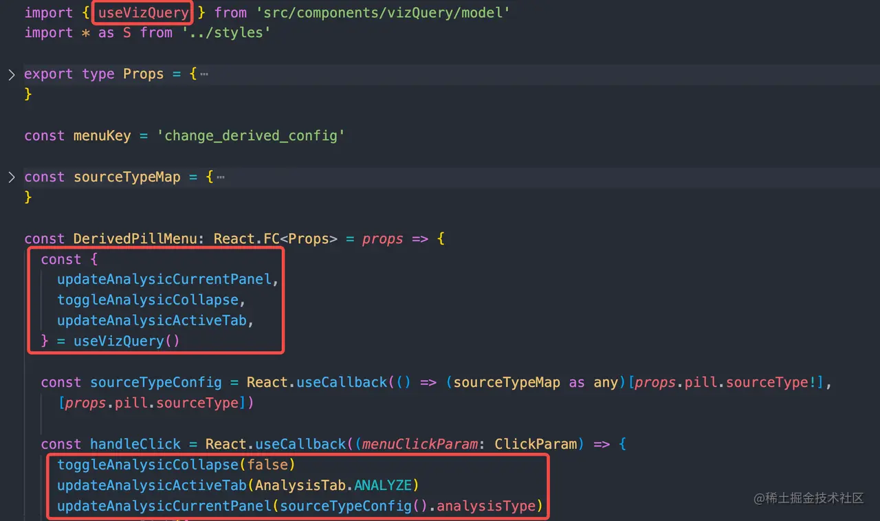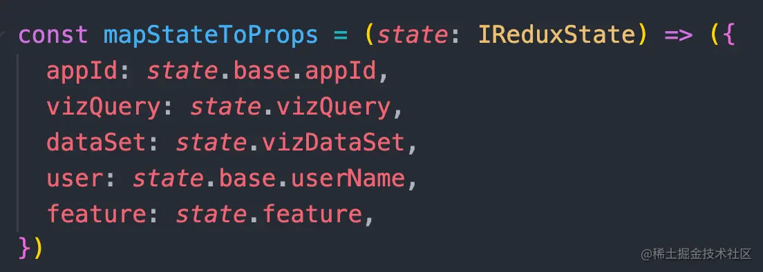 不需要泛型、不需要 connect、mapStateToProps、dispatch,也不需要区分拿变量还是方法,useVizQuery 记住这一个方法就可以了。同时 ts 类型也是自动推导,点击引用会直接跳转到对应中间件,中间件内查找 reference 可以找到使用处,且没有给业务字符串调用的口子,方便管理。