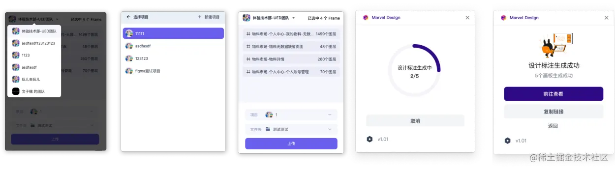 MarvelDesign 是一款打通设计稿交付,页面自动走查的集成平台,我们通过智能化的手段,帮助前端开发工程师,视觉设计师在工作中简化协作步骤,简化思考,提高输出质量,在前端页面还原阶段,设计验收阶段提供不同的智能辅助能力从而起到降本增效的目的。整个平台由 figma 端的数据接收服务,设计稿解析服务,标注生成服务,自动走查服务组合而成。在整个平台中除了通用的画板标注能力,智能走查能力之外,我们还基于深度学习的方式研发了组件识别模型,图标识别模型等,我们会将这些模型运用在设计稿标注生成阶段,将设计稿中的图层进行识别,来反馈出这一图层的类别,在与常规资产进行一一匹配。下面都是平台的相关截图。