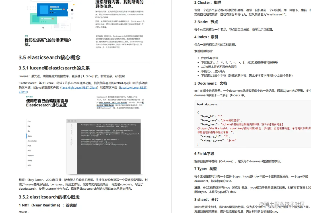 然而很多朋友看枯燥的书籍却苦苦没有进展,因此我熬夜整理出了这份Elasticsearch 核心知识学习手册,基于 Elasticsearch 7.x 版本,【+jcc4261获取】由浅入深地讲解了 ES 的基本概念与服务搭建,带你熟知其运行机制和常用技巧,并通过上手实战,掌握 ES 在实际项目中的应用。希望对你有所帮助