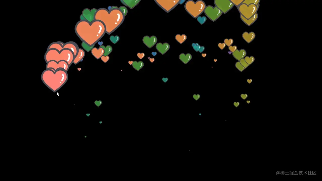 然后我们来编写核心的JavaScript代码,通过offsetX和offsetY获取鼠标位置,在所获得的位置上创建一个span元素,使用random函数生成大小不等的爱心,使用appendChild向body中添加新创建的span元素,使用setTimeout设置爱心显示的间隔。