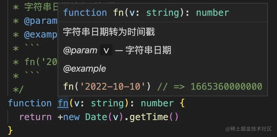 * 这种星号注释,可以在 fn 的调用处提示给调用者