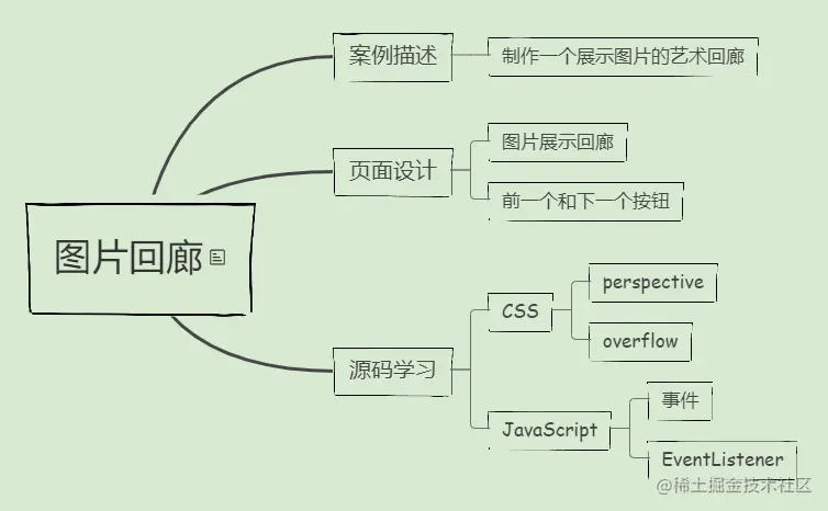 我们来用JavaScript编程实战案例,做一个图片回廊。图片展示在页面上,用户可通过按钮手动旋转。通过实战我们将学会事件和EventListener知识。