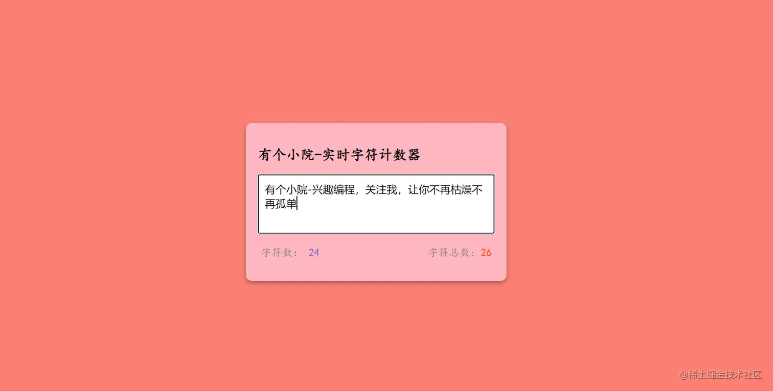 <h2>有个小院-实时字符计数器</h2>