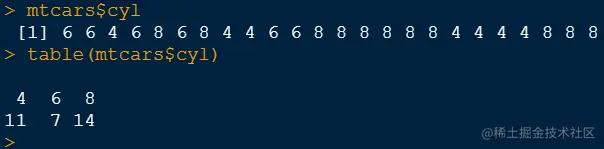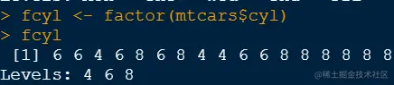 例如mtcars数据集,cyl这一列可以作为因子,而4、6、8就是这一列因子的水平: