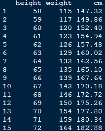 data.frame(women$height*2.54,women$weight)