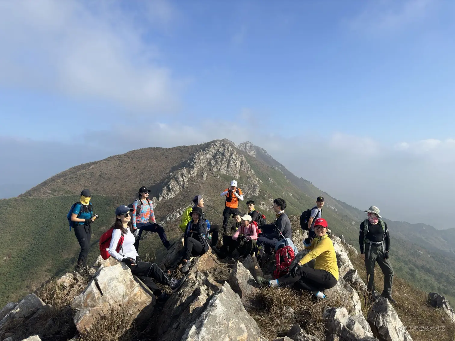 大伙随即进入观景模式,一路走走拍拍,不能自已。一路美景,除了通过大脑的记忆外,现在的手机也是很好的记录工具,我尽量用手机记录着生活,每次回看都会勾起这段美好的旅途回忆。宝神上山时提醒到,山脊的路不长,我们走慢点,多看看风景。走得快的,像是肖肖,在一个岩石上躺着休息,晒太阳,十分惬意。