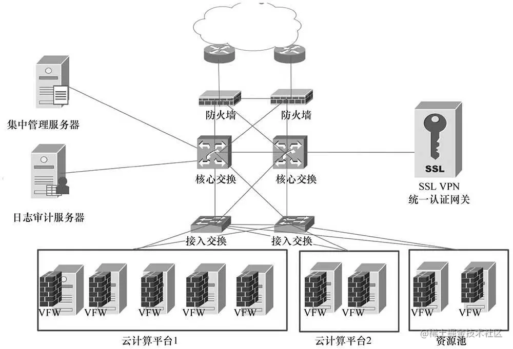 图 1 云计算及虚拟化-体化安全解决方案示例