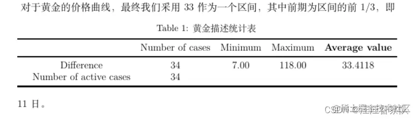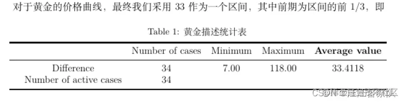 \caption{黄金描述统计表}