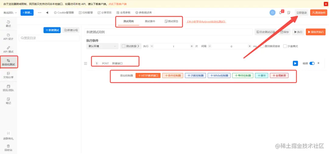 如果你是一个测试工程师,自动化测试当然是你必备的技能,但是写代码去实现接口自动化有点复杂,Apipost就只需要点点点就能完成自动化测试,还直接生成测试报告。同样的,****web版不登录全都能完成。