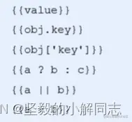 变量,对象属性,三元表达式,逻辑,加减乘除等表达式。