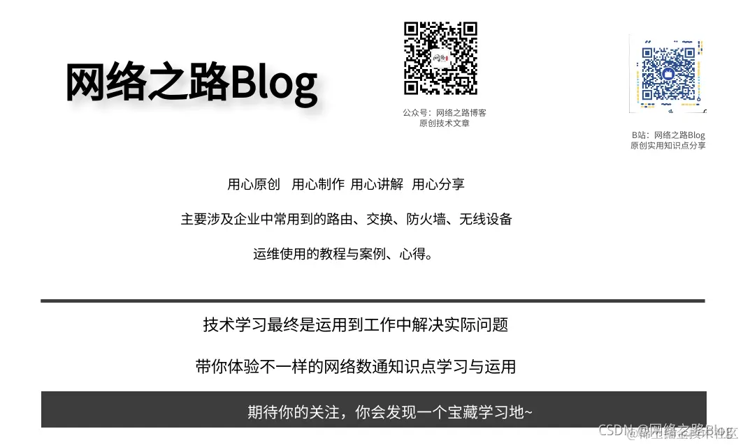 文章版权归网络之路博客/网络之路Blog(公众号/其他平台同名,)所有,转载请标明出处,谢谢,交流群可以加个人微信ciscohuaweih3c,博主拉你进群。