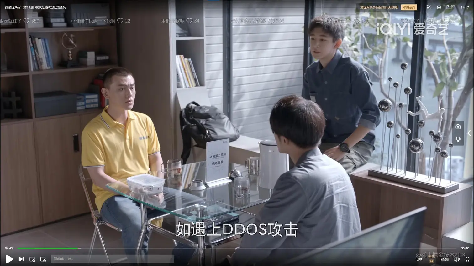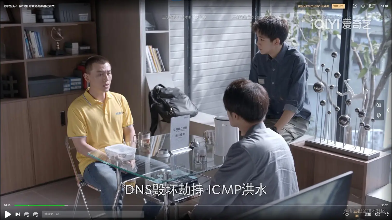 在电视剧《你安全吗?》中秦淮和陈默有一个共同的梦想,就是做出一款攻防兼备的牧羊犬系统。由于陈默不想再参与到黑客中的黑白对抗中,只想好好的陪母亲生活,所以在秦淮邀请陈默共同完成牧羊犬系统的时候,陈默拒绝参与牧羊犬系统的开发。陈默的人物设定是主防,秦淮的人物设定是主攻。缺少了陈默的参与,牧羊犬系统有很明显的防御漏洞。所以在爽滋滋饮料场使用了牧羊犬系统后,在抽奖环节遭到了黑客攻击,导致服务器暂停工作,奖品被小黄牛抢到,造成了爽滋滋饮料场的名誉受损以及奖品丢失。秦淮的“开挂了”公司也被推上了风口浪尖,陈默看到这里,决心来帮助秦淮,于是提起了他发现的牧羊犬漏洞,遇到DDOS攻击,DNS毁坏劫持,ICMP洪水,慢速POST放大反射等攻击是很难抵御的: