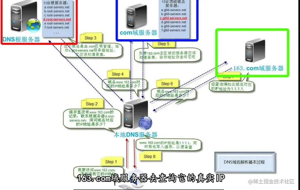 2、DNS劫持:想要知道DNS劫持,那么我们先来看一看什么是DNS,DNS是域名系统的缩写,该系统用于命名组织到域层次结构中的计算机和网络服务。域名是由圆点分开一串单词或缩写组成的,每一个域名都对应一个唯一的IP地址,在Internet上域名与IP地址之间是一对应的,DNS就是进行域名解析的服务器。DNS的作用就是通过主机名,最终得到该主机名对应的IP地址的过程叫作域名解析(或主机名解析),在解析域名时,首先采用静态域名解析的方法,如果静态域名解析不成功,再采用动态域名解析的方法,将一些常用的域名放入静态域名解析表中。下面是一张DNS工作举例截图: