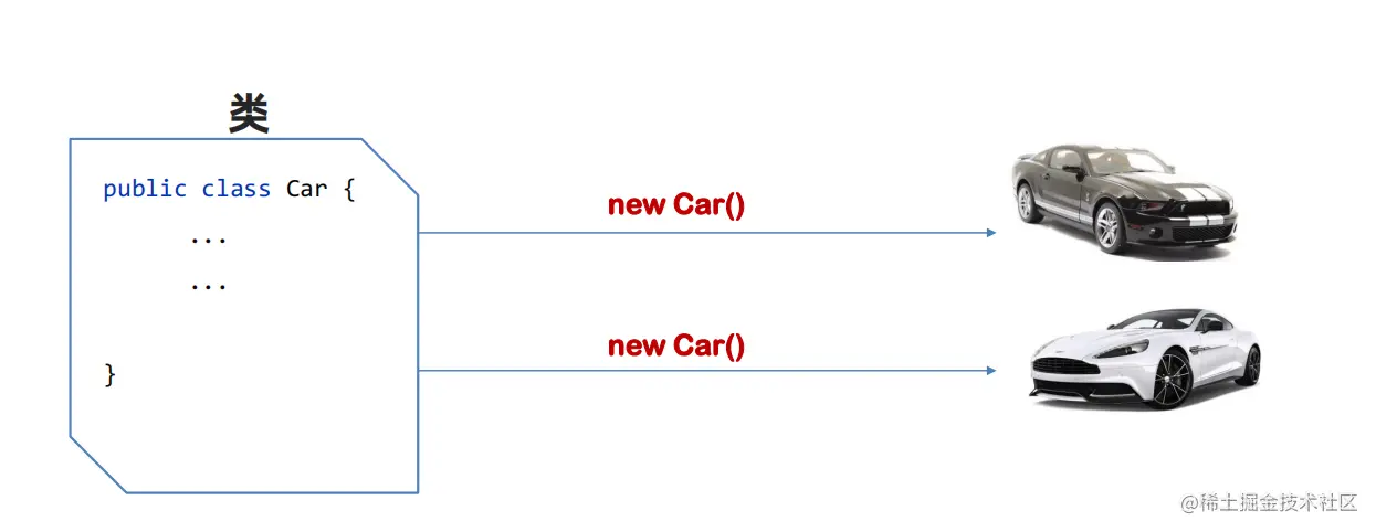类( 设计图 ) :是对象共同特征的描述; 对象:是真实存在的具体实例。
