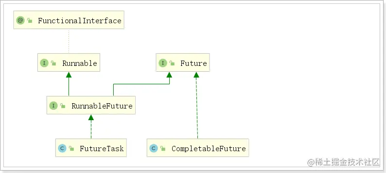问题:Callable实例能否和Runnable实例一样,作为Thread线程实例的target来使用呢?答案是不行。Thread的target属性的类型为Runnable,而Callable接口与Runnable接口之间没有任何继承关系,并且二者唯一的方法在名字上也不同。显而易见,Callable接口实例没有办法作为Thread线程实例的target来使用。既然如此,那么该如何使用Callable接口创建线程呢?