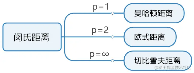 闵氏距离并不是一种距离,而是一组距离的定义,是对多个距离度量公式的概括性的表述,将多个距离公式总结成为的一个公式