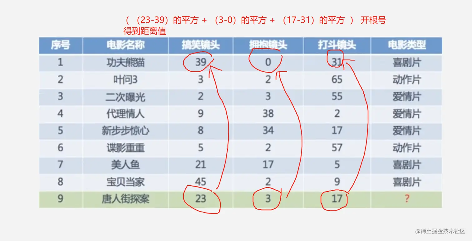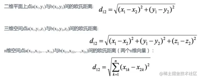 两个样本之间的距离通过欧氏距离公式计算,公式如下