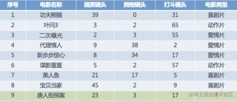 通过KNN的算法思想,最后得到每个电影和被预测的电影的距离