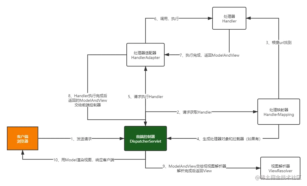 整个请求处理过程都是 DispatcherServlet 的 doDispatch() 方法在宏观上协调和调度