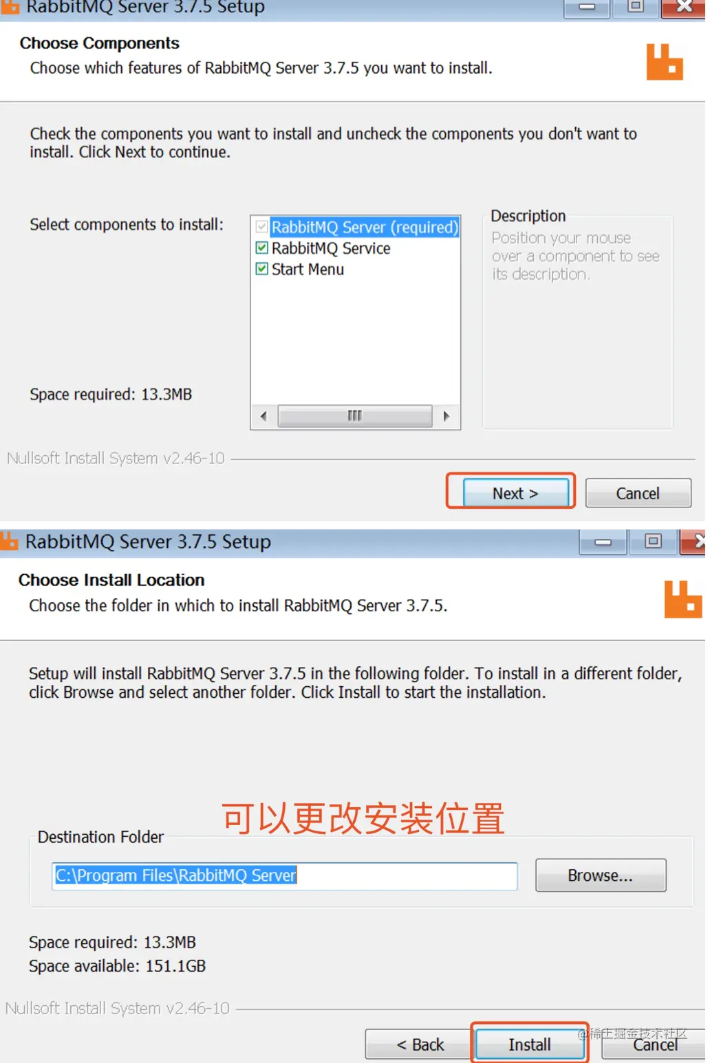 - 添加 一个系统变量RABBITMQ_SERVER,设置为RabbitMQ 的安装目录,如我放置的目录为C:\Program Files\RabbitMQ Server\rabbitmq_server-3.7.5