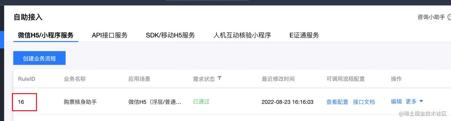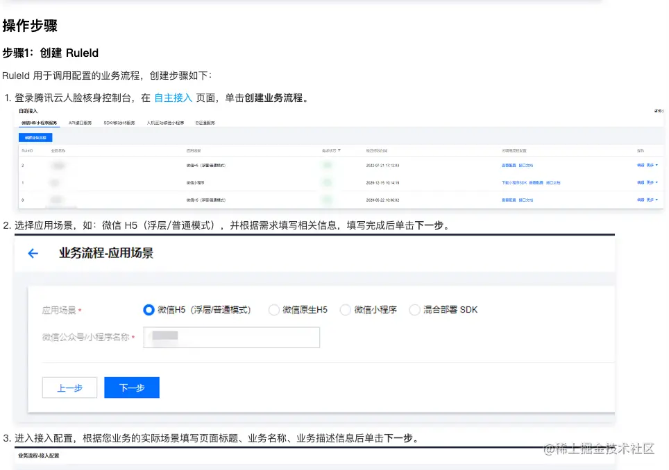 微信浮层H5配置流程中详细说明了创建核身业务流程的步骤。