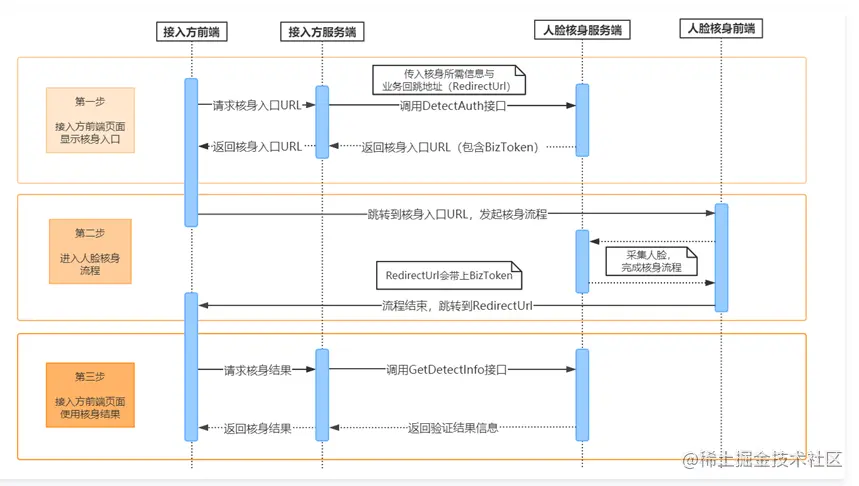 1. 给游客发放一个二维码,这个二维码指向接入方调用DetectAuth的接口