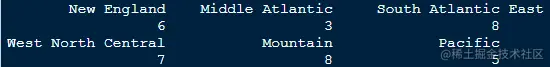 tapply(state.name,state.division,FUN = length)