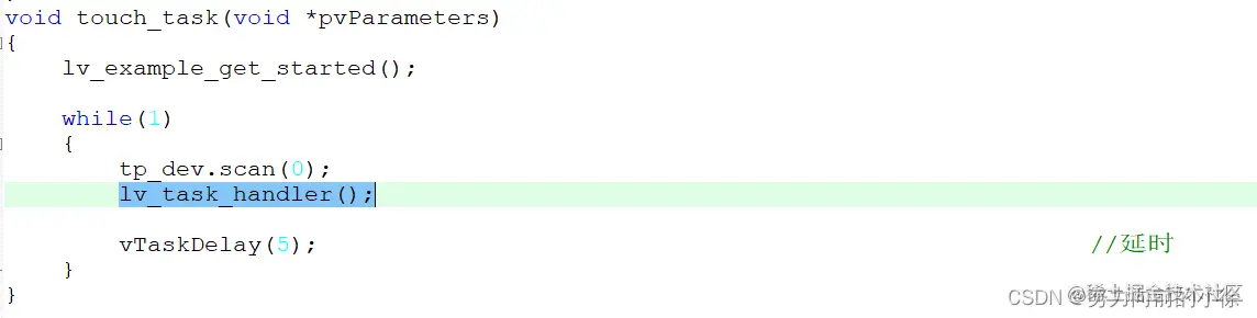 在main函数中调用lv_example_get_started函数来测试,然后在while里调用lv_task_handler() 来刷新屏幕显示。我使用的是带RTOS的,所以就在一个任务函数里这样调用。