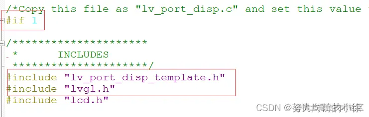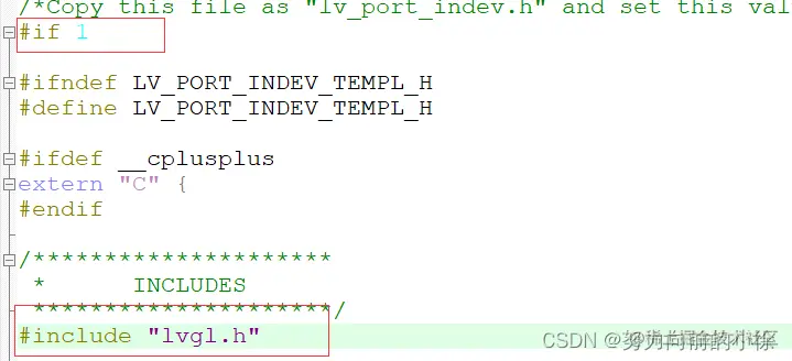 和上面的操作类似,先将lv_port_indev_template.c文件的全局开关打开 if 1,修改头文件包含路径