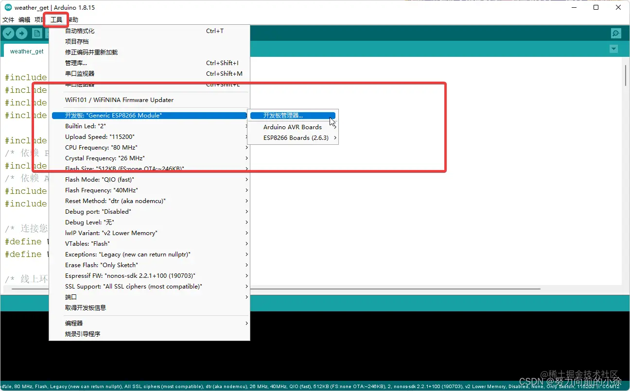 安装好之后安装esp8266的包