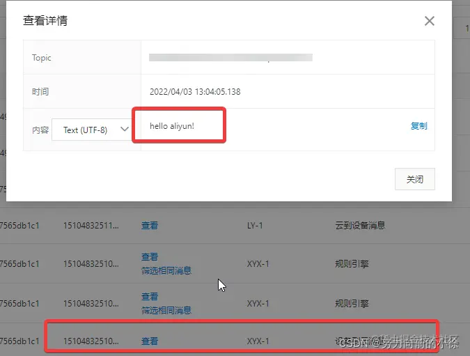 代码烧录好之后,在云平台就可以查看发送来的消息