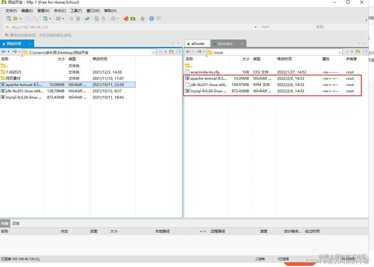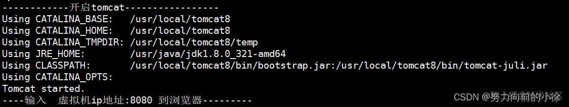 vi install.sh #鼠标中键可以直接粘贴 sh install.sh jdk-8u321-linux-x64.rpm apache-tomcat-8.5.72.tar.gz mysql-8.0.26-linux-glibc2.12-x86_64.tar.xz #灵活运用tab补全 (注意软件顺序)