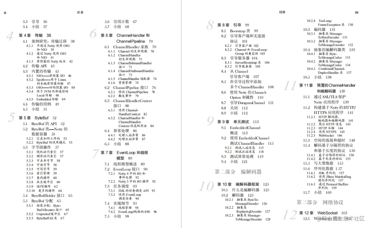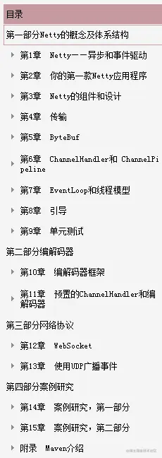 - 第三部分介绍 Netty 对于应用层高级协议的支持,会覆盖常见的协议及其在实践中的应用;