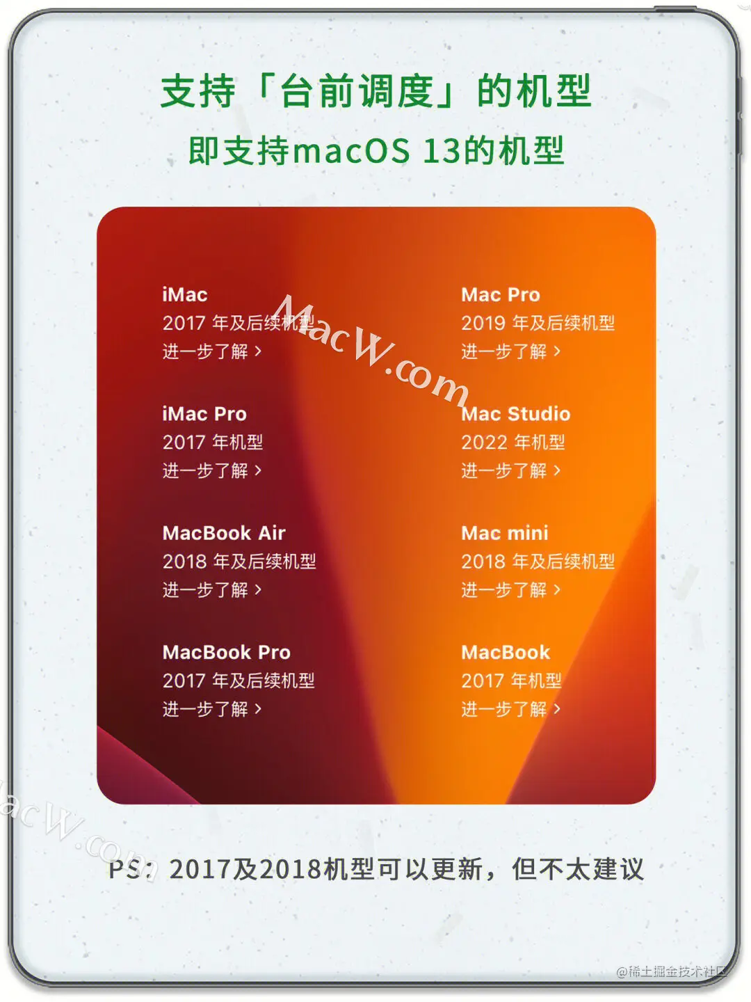 5、支持「台前调度」的机型,即支持macos 13的机型