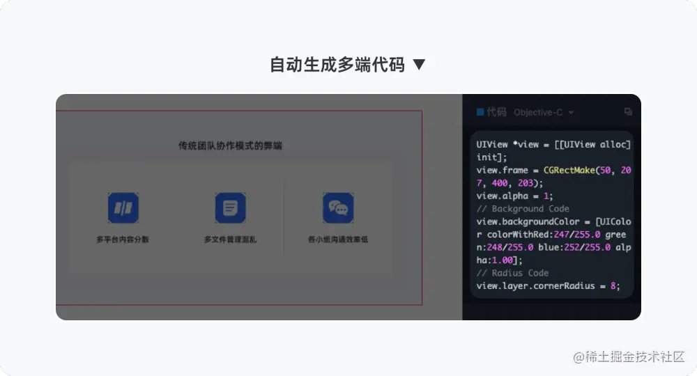 设计稿所有元素自动生成多端代码,轻松对接开发,节省大量的时间成本。另外,自动生成的代码更能高度还原设计效果,开发完成后,设计的走查验收工作相对减少了很多。