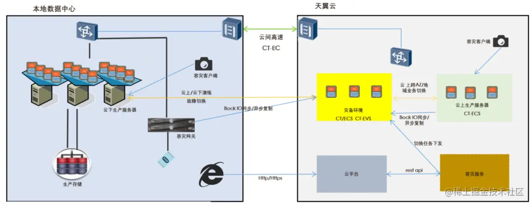 天翼云云容灾基于天翼云原生架构,整合弹性云主机CT-ECS、云硬盘CT-EVS、VPC终端结点(CT-VPCEP)、云间高速(CT-EC)等云服务产品,实现容灾资源按需开通,弹性扩缩容。