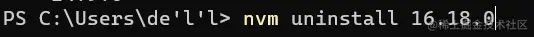 (6) 如果想删除某node.js版本的话,输入命令行nvm uninstall node版本号(例如:nvm uninstall 16.18.0)即可删除对应版本