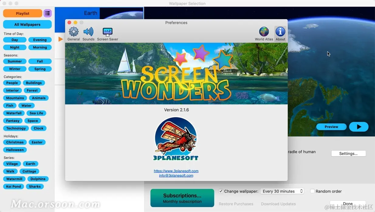 Screen Wonders壁纸软件。Screen Wonders为大家提供了许多不同主题,季节和节日动态壁纸场景。大家使用这款软件不用担心电量不足,Screen Wonders拥有出色的智能节能设置。Screen Wonders是一款功能强大的屏幕壁纸工具,软件拥有高品质的3D图形和效果,拥有视网膜5K显示器,多显示器支持等特征。