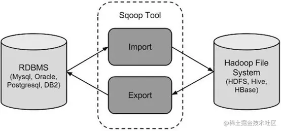从Sqoop的架构上我们可以看到,数据导入的过程主要是RDBMS到HDFS,Pig,HBase,Hive等存储或计算引擎迁移数据的过程,导出则是将上述提到的存储引擎数据回流到关系型数据库的过程