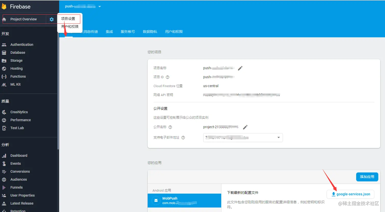 注:FCM通道服务需在FCM官网控制台,下载google-services.json文件,复制到应用module中: