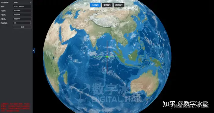 在该模式下,会提供一个作为参考用的标准的地球仪模型,以便于进行经纬度校准。同上方地图定位模式类似,点击不同的菜单按钮,可分别对本场景模型、地图模型调整缩放和旋转。